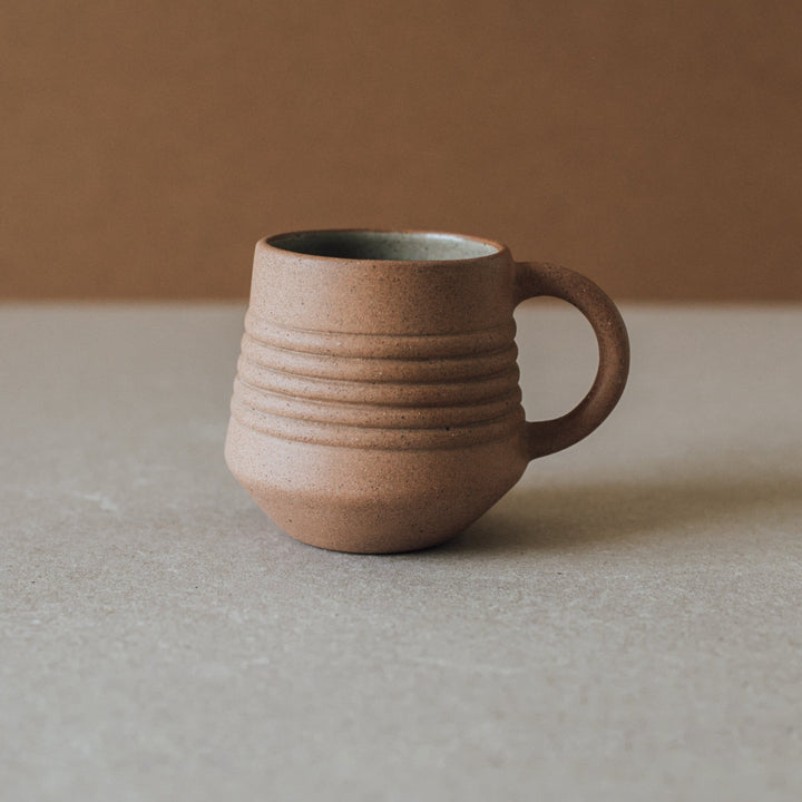 Handcrafted 9.5 oz cup made from ceramic and local clay. Glazed only in the inside, the final earth tones and textures are the result of the different combination of clays exposed to the heat of the kiln fire.