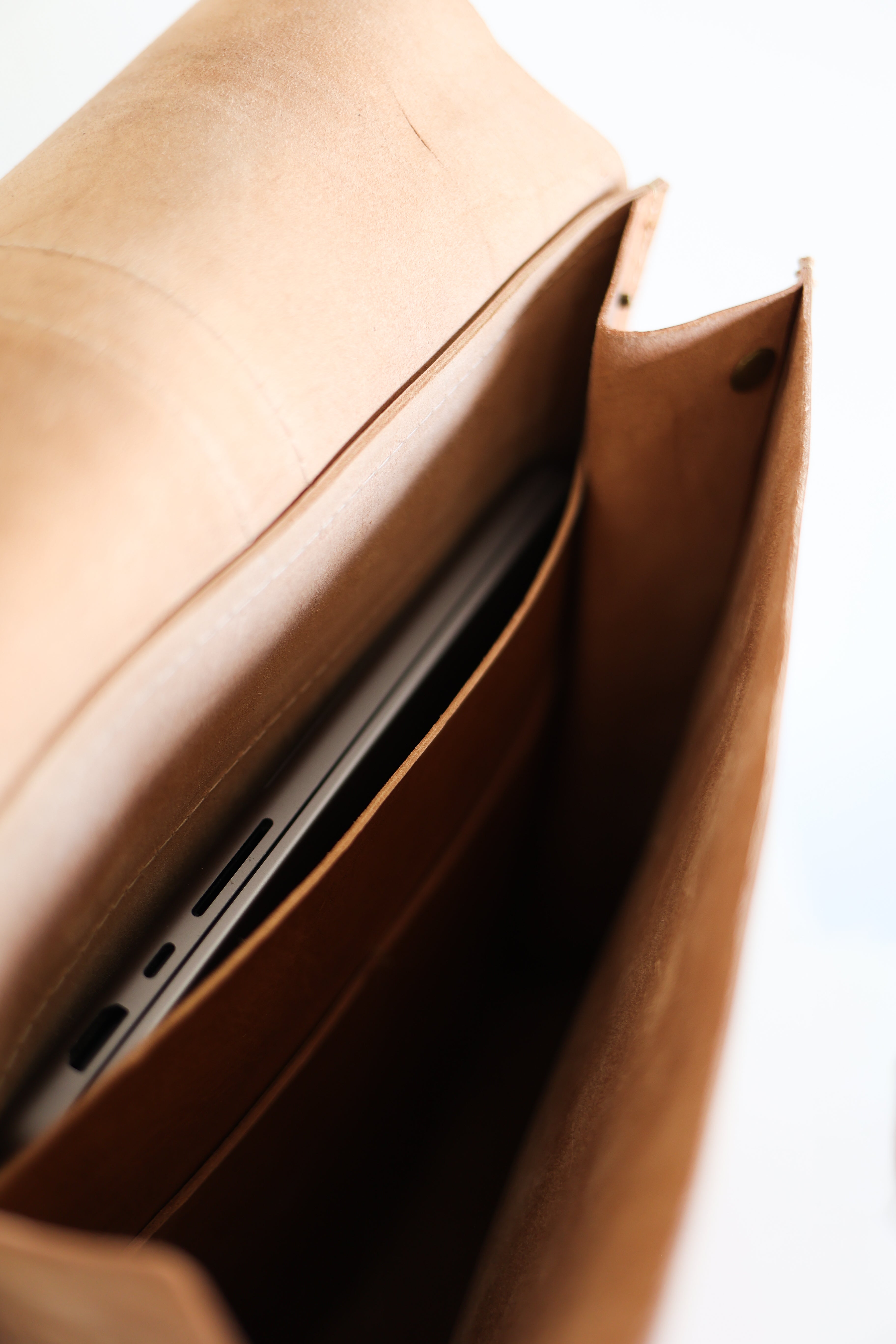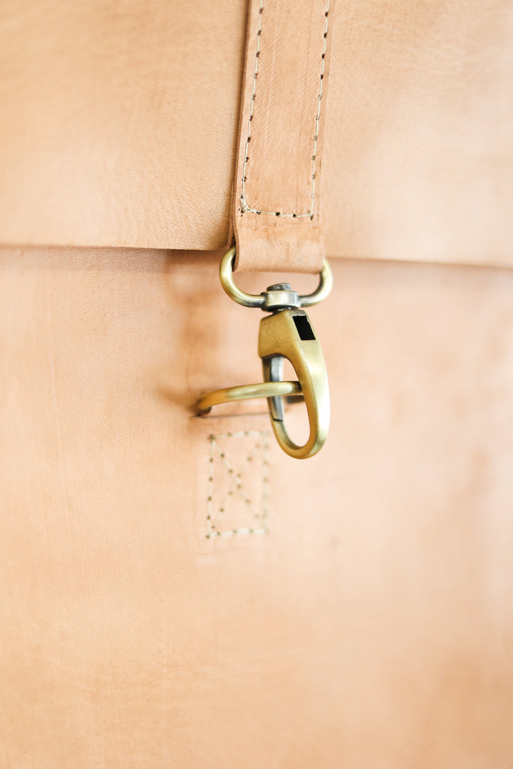The Atlas Mountains define the Moroccan landscape, separating the Mediterranean coast from the Sahara Desert. Our Atlas Collection is inspired by these rugged ranges with their simple form built from thick raw cowhide for durability. Measures approximately: 11.25" wide 17" tall Features: *exterior clip for closing *adjustable leather straps *2 interior pockets *laptop compartment *brass snaps on both sides for additional support Each item is handmade and measurements may vary slightly. As leather is a natural material, color tone and texture may vary slightly from item to item. Your natural leather item will develop its own unique patina and darken slightly over time. _______________________ Jubilee Trading Co. is a non-profit on mission to create life-transforming employment in our local community + beyond. We work directly with global artisans to make our goods, as well as provide support for other artisan brands through our warehouse and local team. Every product purchased starts a ripple effect of positive impact. With your purchase, you become a part of this story!