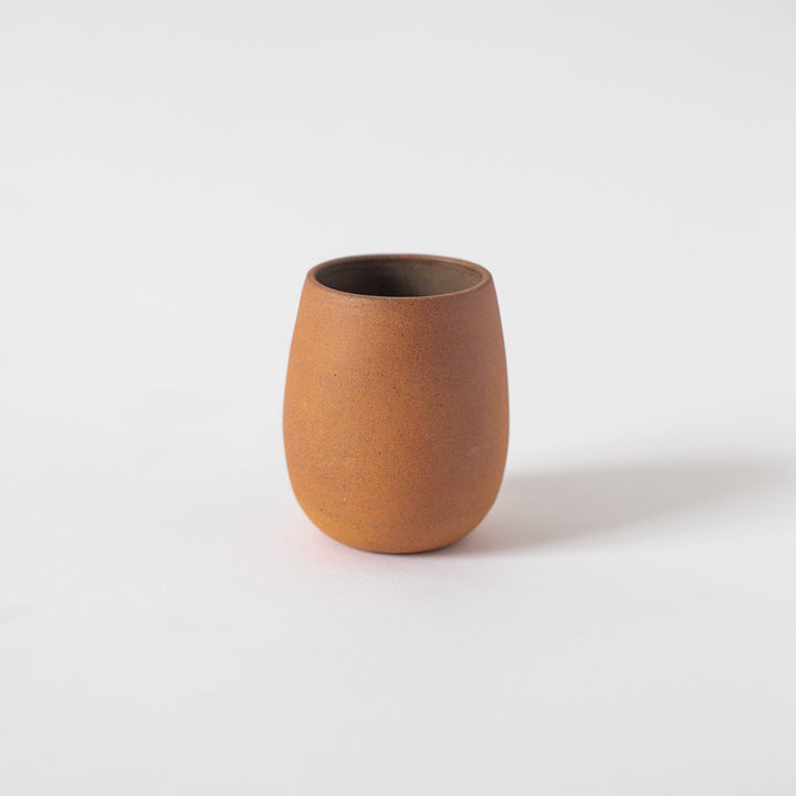 Handcrafted 10 oz glass made from ceramic and local clay. Glazed only in the inside, the final earth tones and textures are the result of the different combination of clays exposed to the heat of the kiln fire.