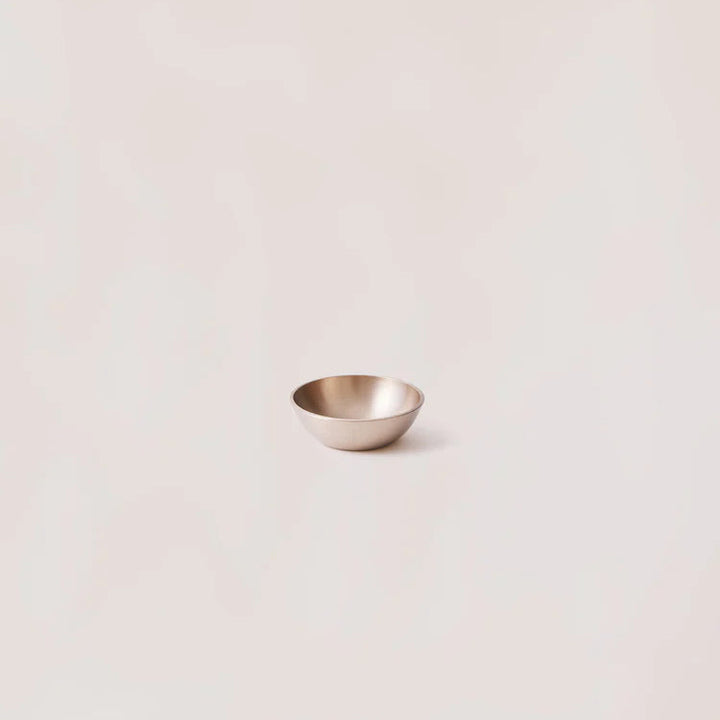 The weighted bronze is opulent to the touch and the clean lines lend it a contemporary sculptural sensibility. Complements your food choices perfectly, be it a Sushi dip or a mint chutney.