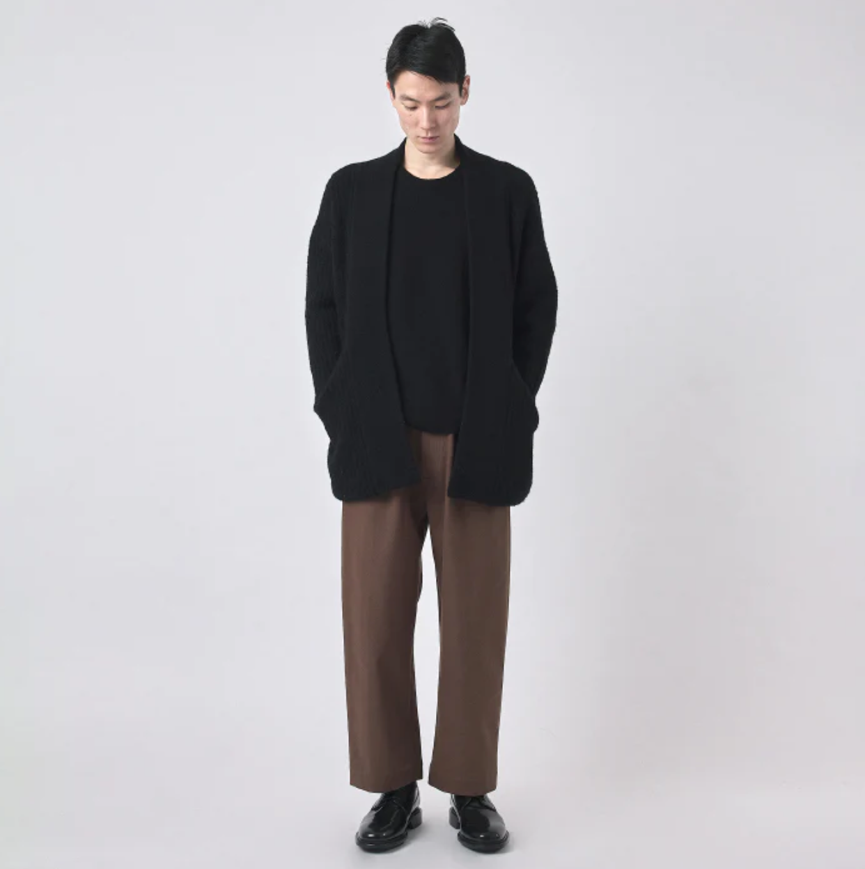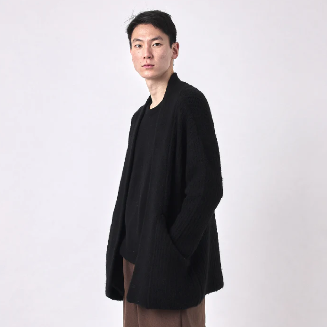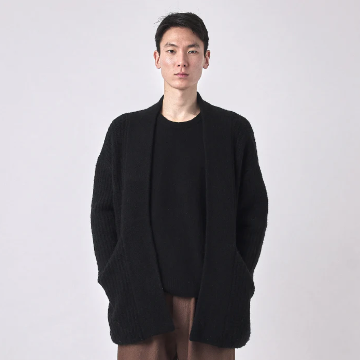 a super cozy chunky cardigan with a wide rib knit. designed with a relaxed fit and a practical length. features an open closure and two deep pockets.