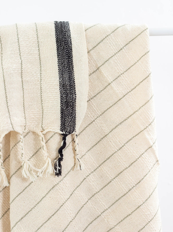 These towels are woven on traditional semi-automatic looms in Antioch, Turkey. They are made with sustainable fibers such as cotton and linen. They get softer and more absorbent with every wash. Our Turkish towels accommodate heavy usage over many years, which means less waste from your household. Their multi-use functionality and aesthetic design mean that these ‘towels’ can also be used as a beach wrap, baby cover, picnic blanket, tablecloth and even a shawl besides bath towel.