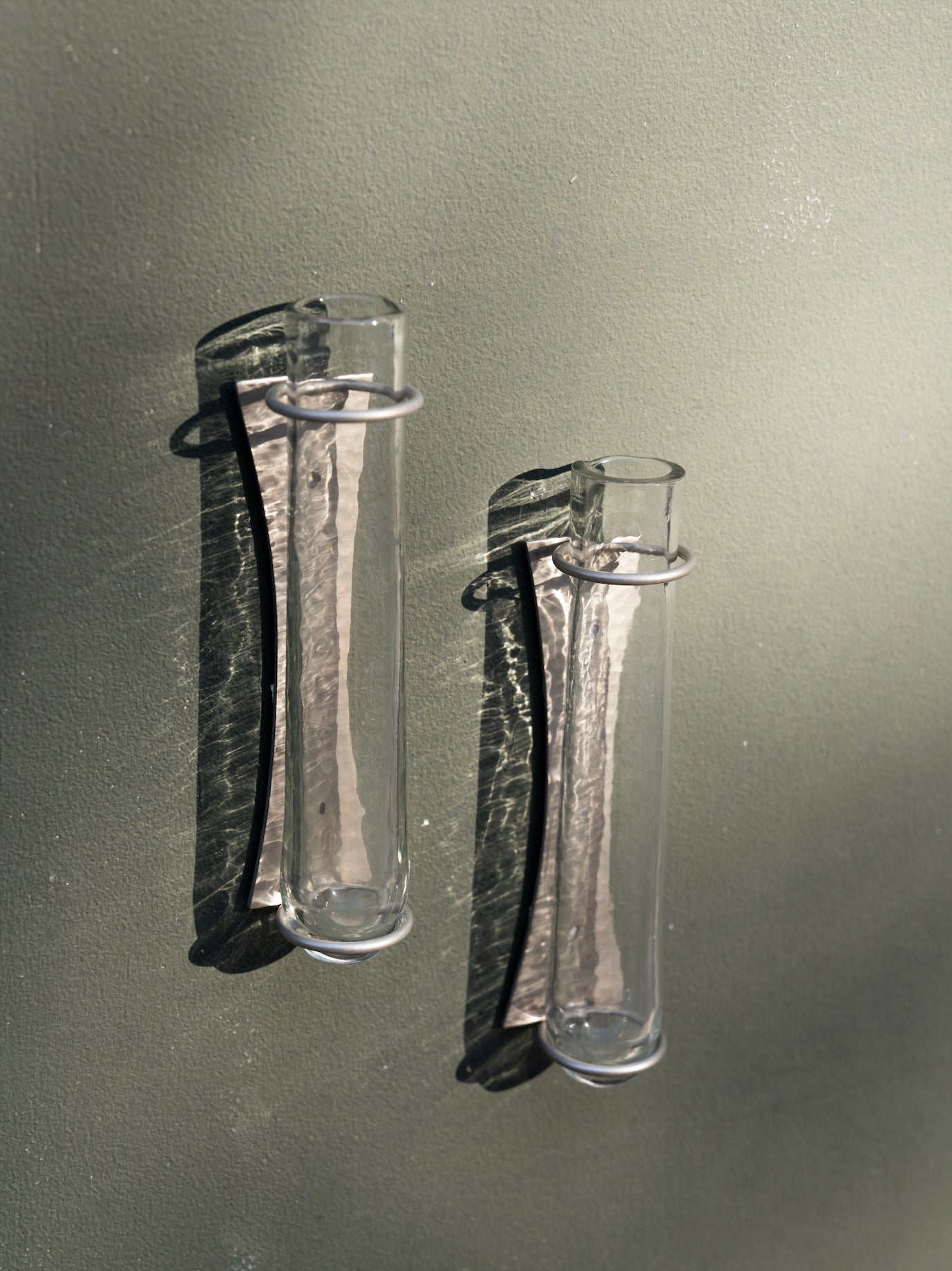Enhance your home decor with the Floral Wall Vase set. Each vase includes a glass insert for stems, perfect for displaying your favorite flowers. This set of 2 allows for versatile placement in any room elevating your space with a touch of elegance.