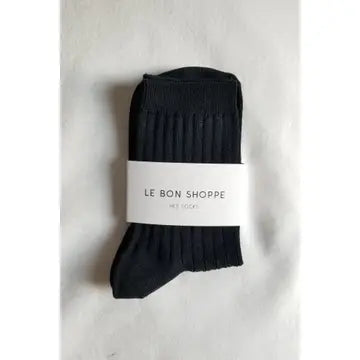 le bon shoppe her socks are ethically-made in south korea. their ethos centers around producing limited quantities of timeless staples that are made to last.