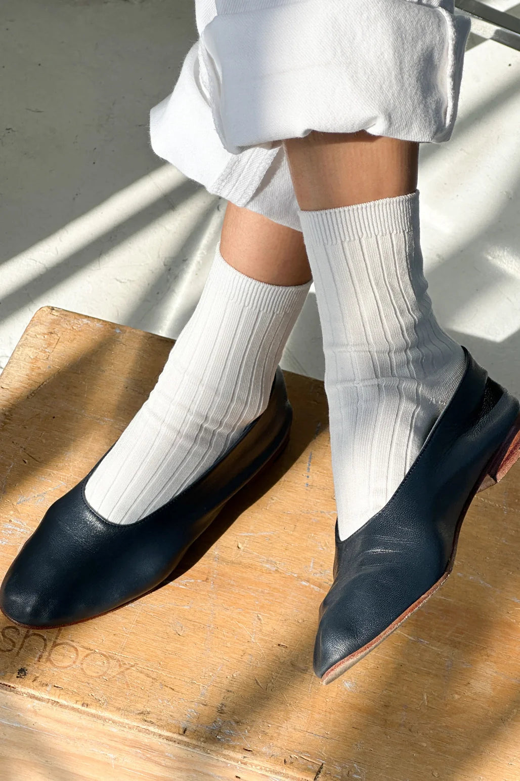 the le bon shoppe her mercerized combed cotton rib socks is the sock that will make you throw all your other socks away. classically ribbed, perfect height, breathable cotton blend yarn in the most beautiful assortment of colors. she will pair with any shoe, sandals, sneakers, mules, clogs, boots, she is your go to sock! the perfect height, knit rib socks.