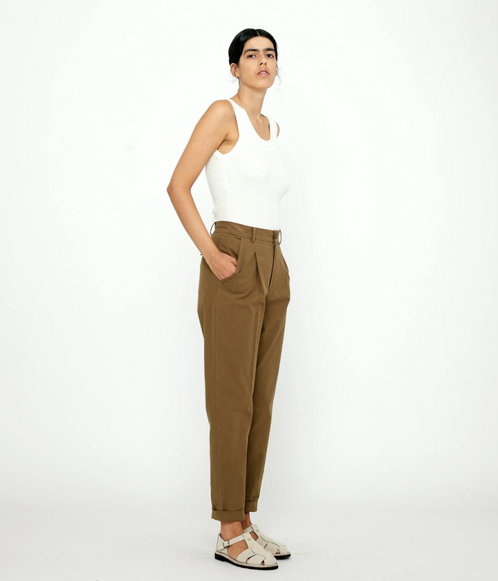 the linen scoop neck knit tank is 35% organic cotton + 35% tencel + 30% linen, and it runs true to size. we recommend gentle wash + lay flat to dry. do not dry clean.