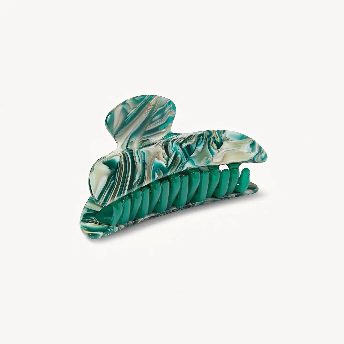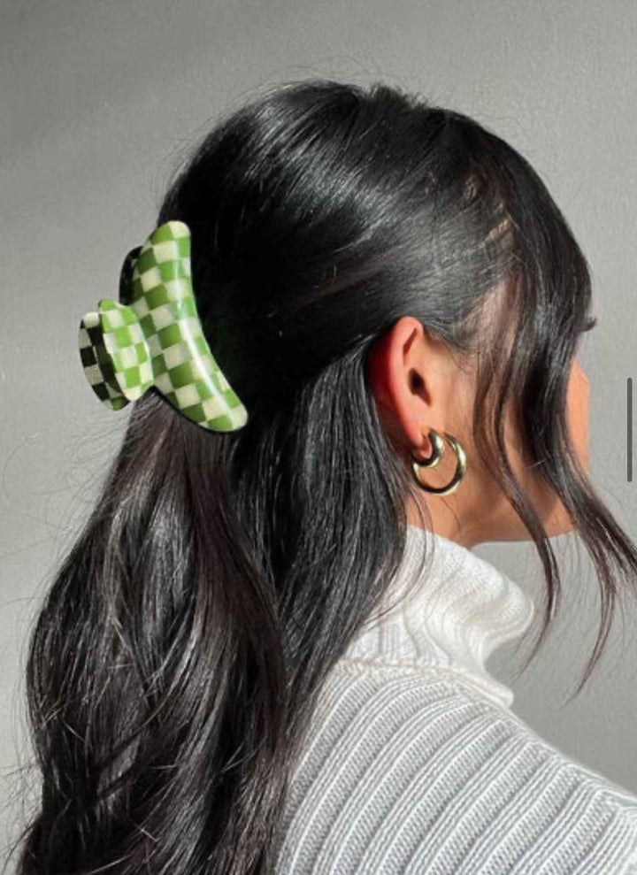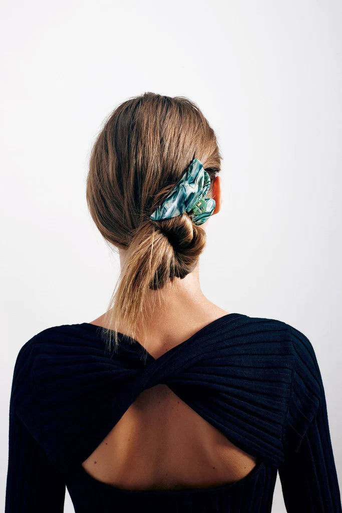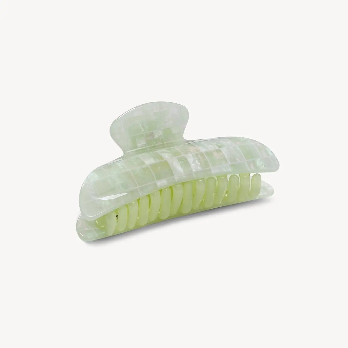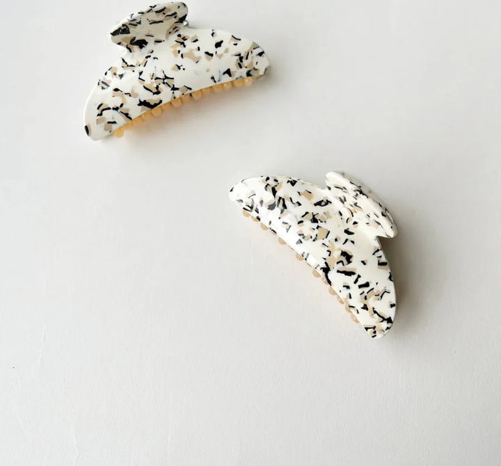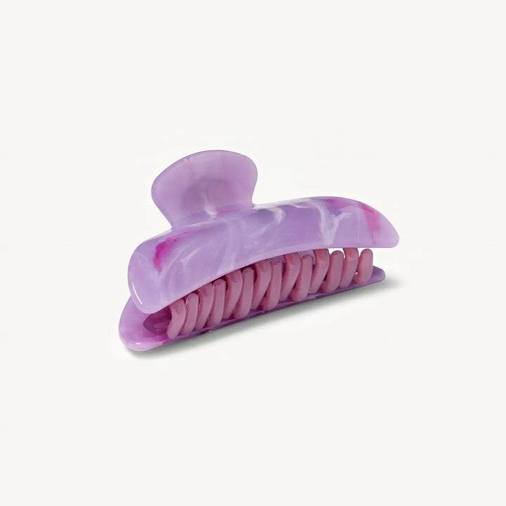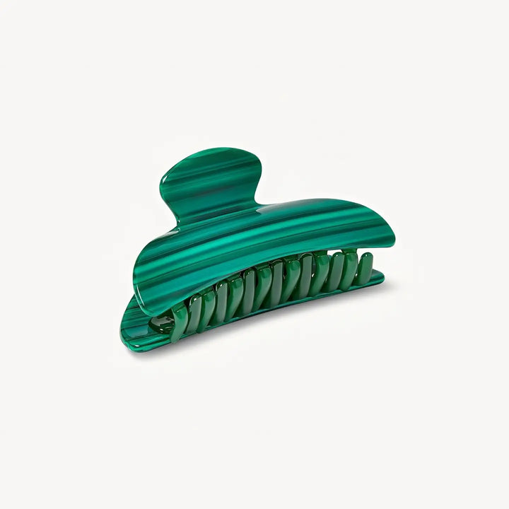 the midi claw measures 1.75” long and 3.5” wide, and it is made out of eco-friendly italian acetate.