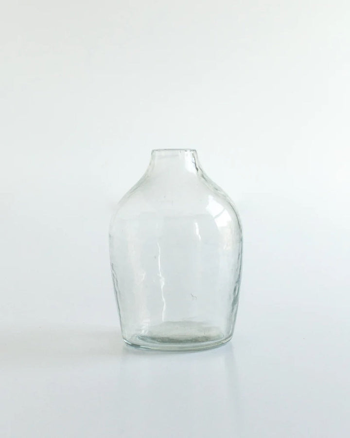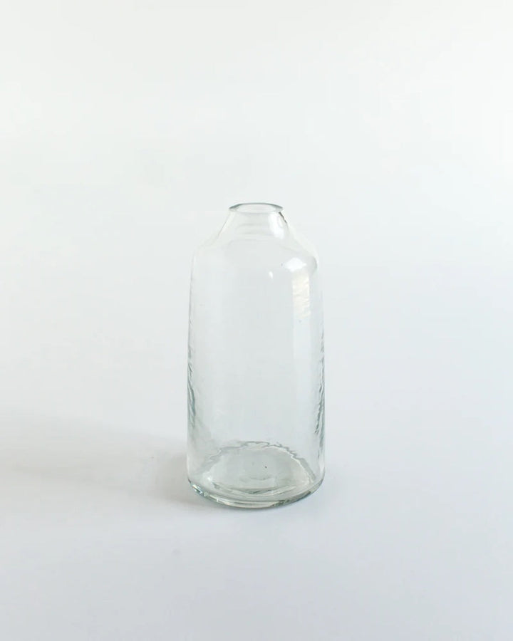 Introducing our exquisite collection of handblown hammered glass bud vases, a perfect blend of ethical craftsmanship and sustainable design. Each vase is meticulously hand-crafted from 100% recycled glass, offering a unique hand-hammered texture in three complimentary shapes. Ideal for showcasing a single bloom or a small bouquet, these bud vases bring a touch of subtle texture to any space while honoring a commitment to people and the planet.