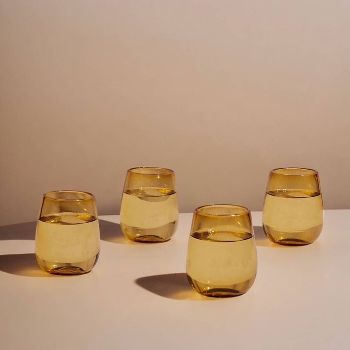Amber Glassware, Set of Four, Mouthblown in Mexico.