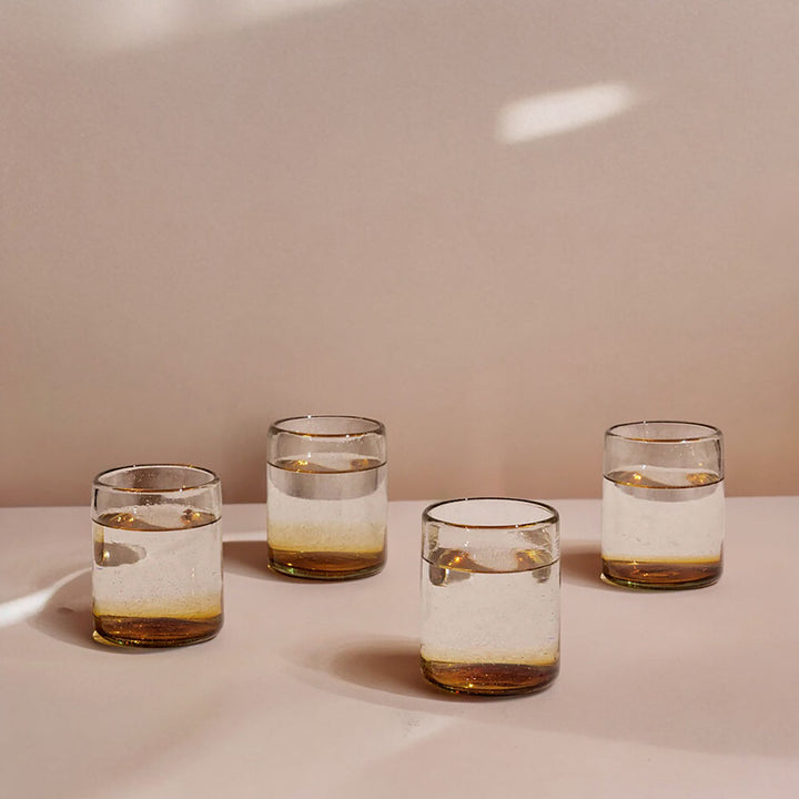 Recycled Ombre Effect DOF Glassware, Amber and Clear, Set of Four, Mouthblown in Mexico.