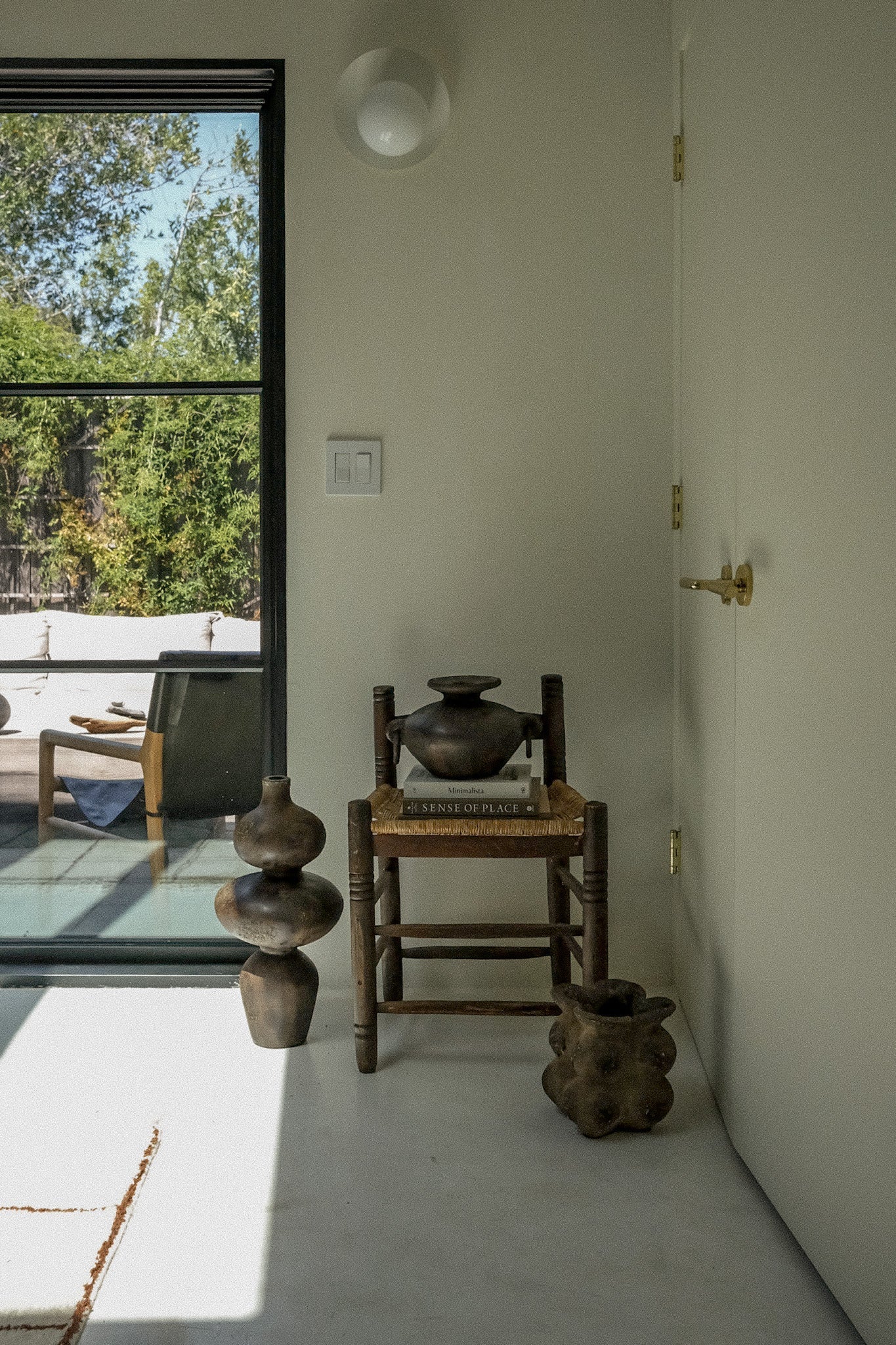 The vessel’s deep, earthy brown color and textured vintage finish further enhance its striking form, offering a subtle yet bold contrast in both traditional and contemporary interiors. Whether used as a decorative vase for botanicals or displayed as a standalone piece, the Sewu Vessel serves as a statement of refined artistry and cultural heritage.