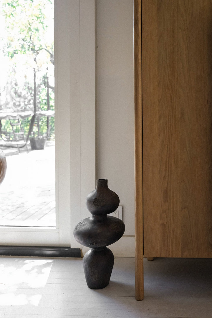 The Sewu Vessel is a captivating terracotta sculpture, handcrafted by local Indonesian artisans. This abstract piece draws inspiration from the iconic crown of the Sewu Temple, with its graceful, curvaceous layers tapering elegantly at the middle and top. Its unique shape evokes a sense of movement and balance, making it a true work of art.