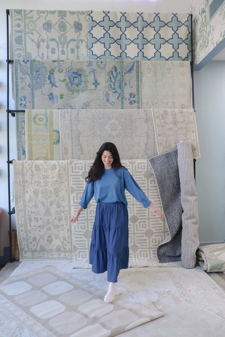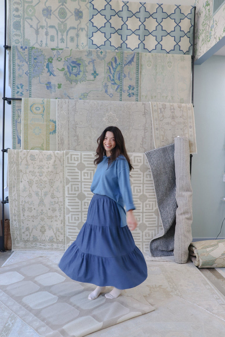 the nlt stan cotton skirt is a tiered midi denim skirt with an elastic waist and side pockets – a versatile, everyday piece that brings ease and style to your look.