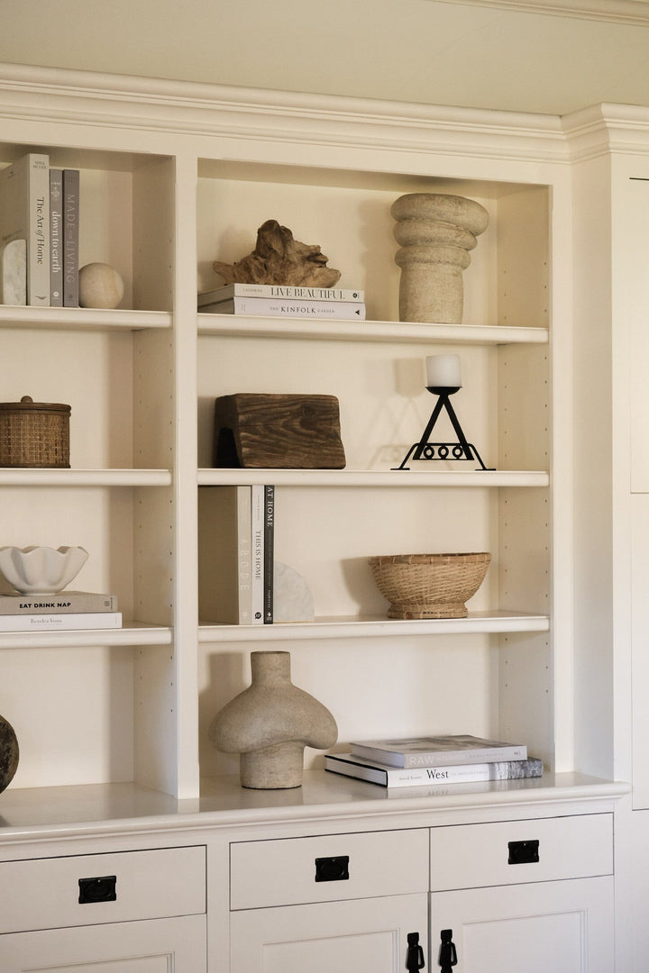 The Tanah vessel is an elegant terracotta sculpture handmade by local Indonesian artisans. The vessel's name comes from the marvelous Tanah lot, an ancient Hindu temple dedicated to the gods of the sea. Its pristine shell-white color gives a beachy feel, while its interesting shape that resembles a hut is a callback to coastal living. This beautiful sculpture is the perfect addition to any room, desk or counter, a fusion of functionality and creativity crafted using techniques that have been passed down through generations. Use it as a vase for your dry stem or as a standalone display.