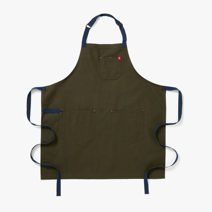 The Essential Apron - Olive Green Navy Straps