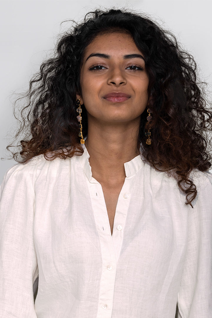The little details make all the difference in this pleated button-down shirt with shoulder pads for added structure.