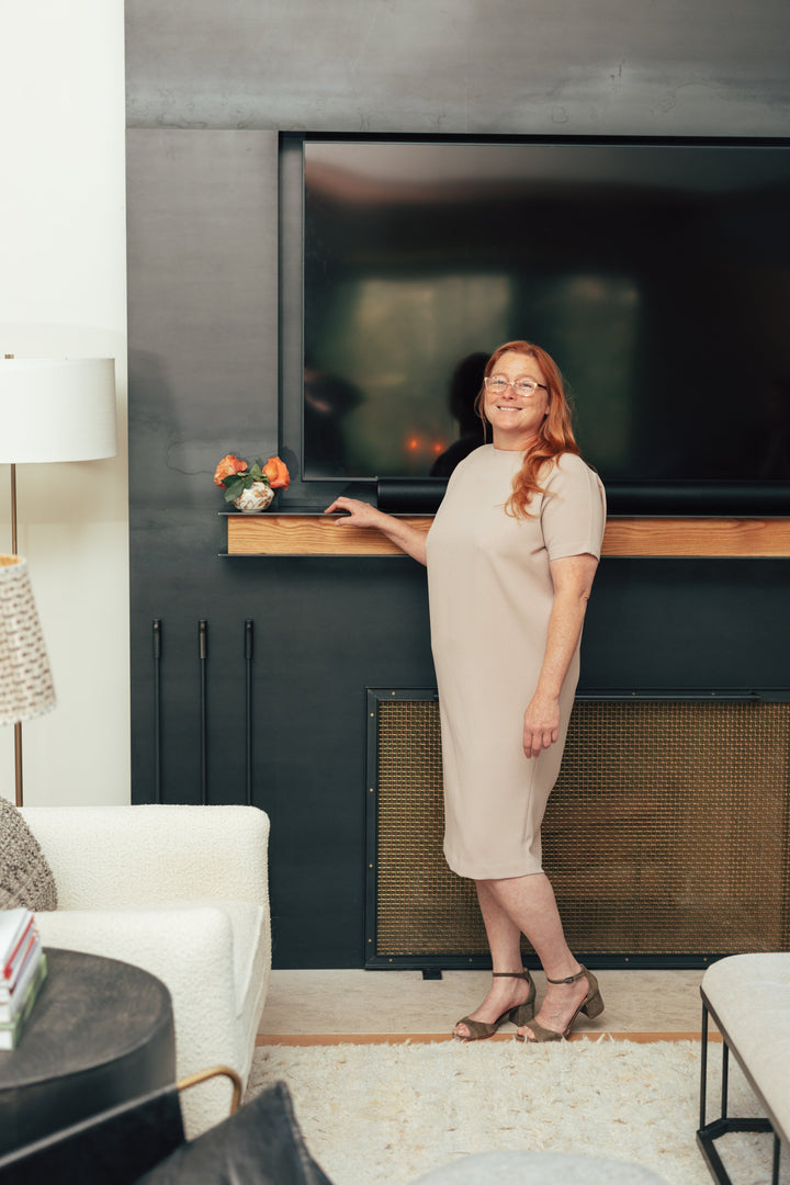 it runs true to size, and is 100% polyester crepe. we recommend gentle wash + hang to dry or dry clean.