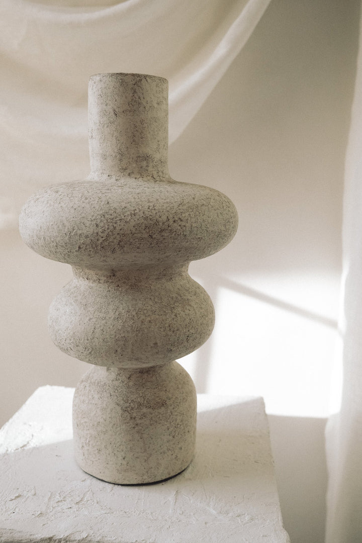 The Ulun vessel is a refined terracotta sculpture handmade by local Indonesian artisans. Crafted with techniques passed down through generations, the Ulun's distinctive structure is an ode to the elements and the artisan's ingenuity, and is inspired by structures of temples in Indonesia. Its dark grey hues and high quality finish make it a valuable addition to any home.