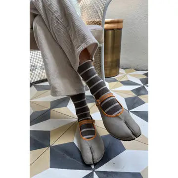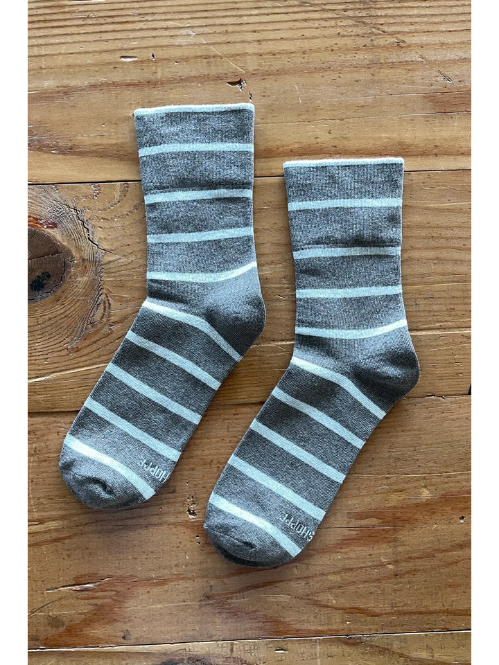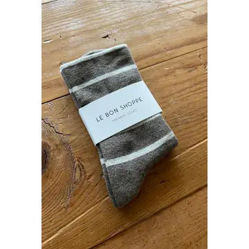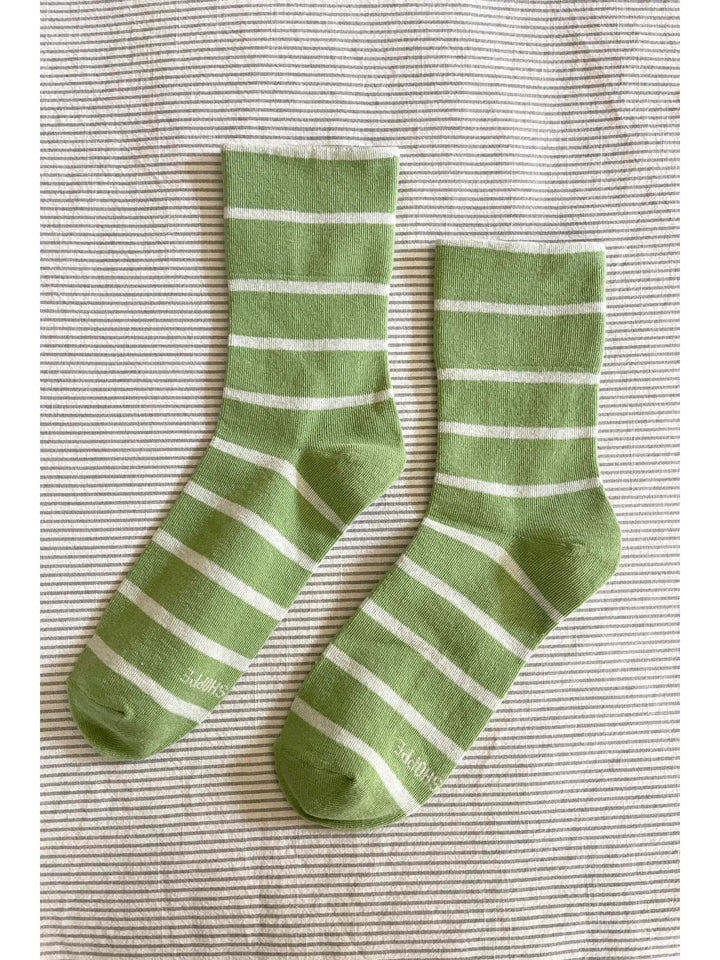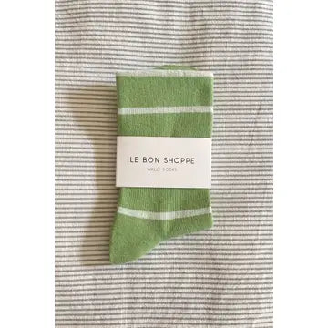 the le bon shoppe wally sock is a classic and forever staple in every girls closet that transcends the seasons and the trends. the wally socks are made in a beautifully classic stripe that is reminiscent of parisian chic. she loves to be styled with colorful pair of mary janes, ballet flats or a cool city sneaker. it is made from a breathable cotton blend that you can sweat, dance, jump and play in without leaving a mark on your skin like most sock bands do!